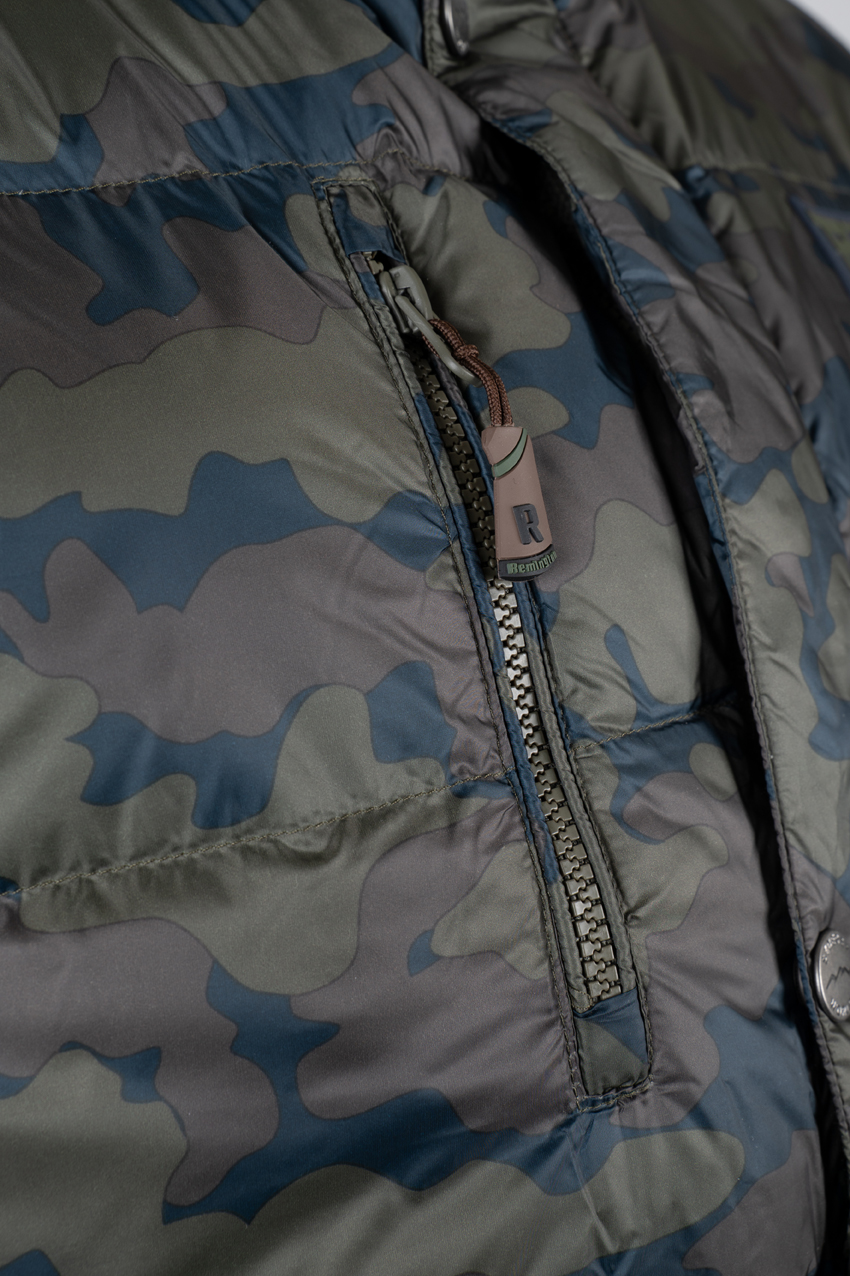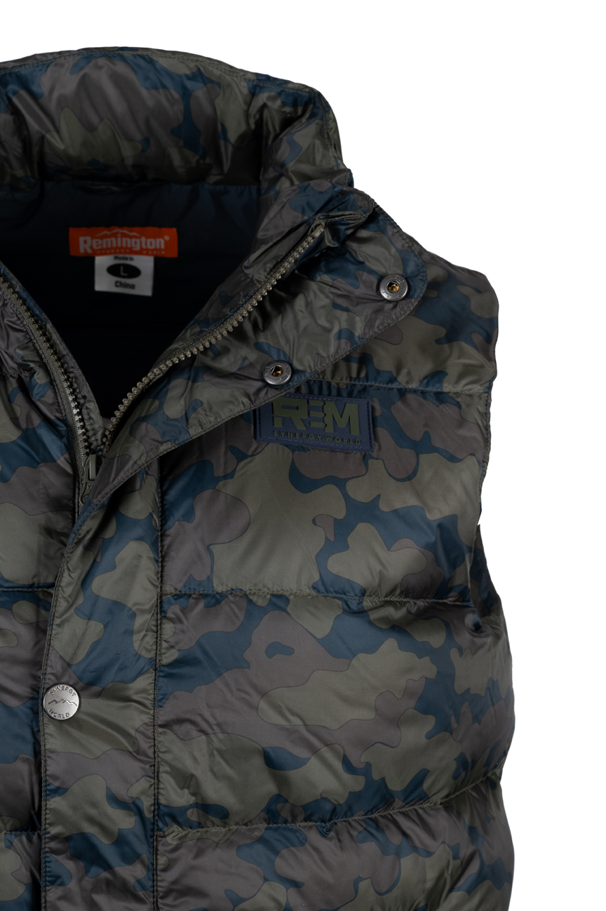 The Remington Lynx Camo vest is designed for spring and fall use, either as a standalone piece of gear or as an additional insulating layer. The water-repellent fabric protects against moisture, while the down-and-feather filling retains warmth during moderate activity. The model withstands everyday outdoor use and requires no complicated care.