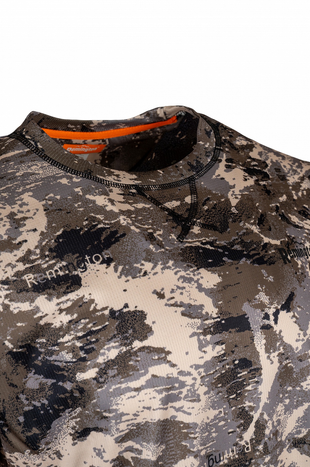The Remington Shirt is for those who value the practicality and versatility of clothing. This model can be used outdoors, during fishing, hunting, tourism, and it will also be convenient to play sports. The soft, tactilely pleasant, elastic fabric of the product contains spandex. Because of that, the T-shirt is light, does not wrinkle, dirt and stains can be easily removed from it, the color will delight you with its brightness for a long time. In warm weather, this T-shirt can be used as the main item, and it is designed for the bottom, "breathable" layer in cold weather.
