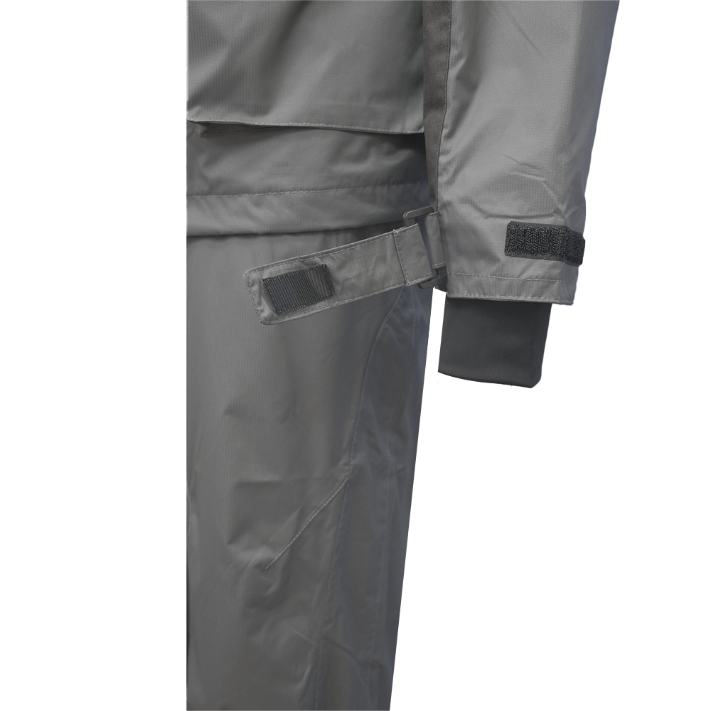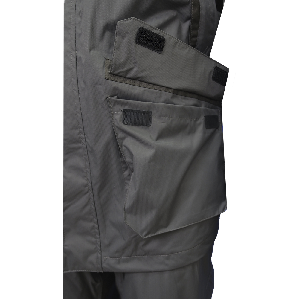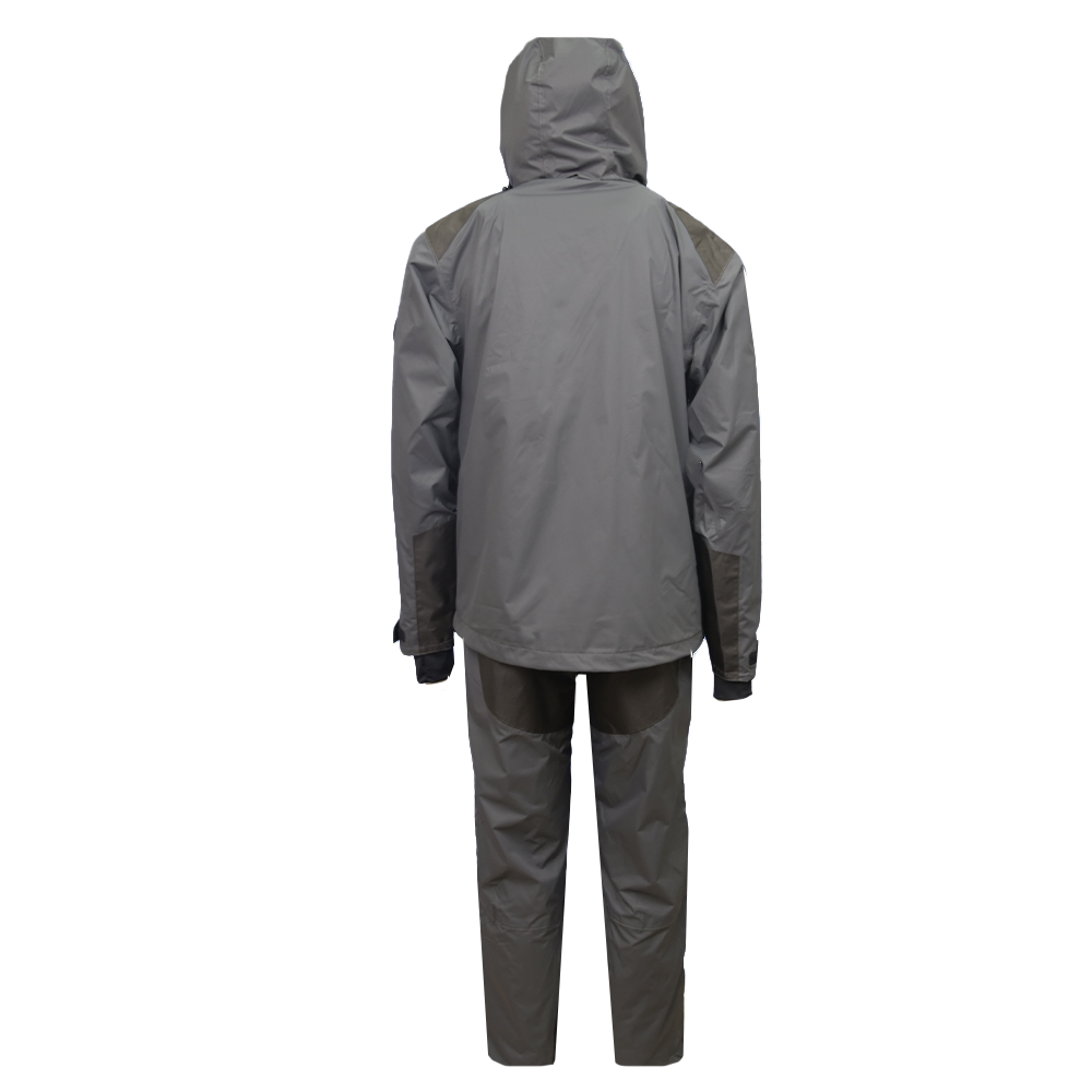 Summer suit for fishing and outdoor activities. It has additional protection from durable fabric in places of increased wear. High stand-up collar with built-in adjustable hood, zipped wind flap, drawstring at the bottom of the jacket, and adjustable cuffs to protect against rain and wind. Comfortable pants with removable suspenders and an elasticated waistband fit perfectly on any figure and do not hinder movement. The trousers have two pockets with a waterproof zipper and additional zippers at the bottom of the trousers for ease of use with different types of shoes.