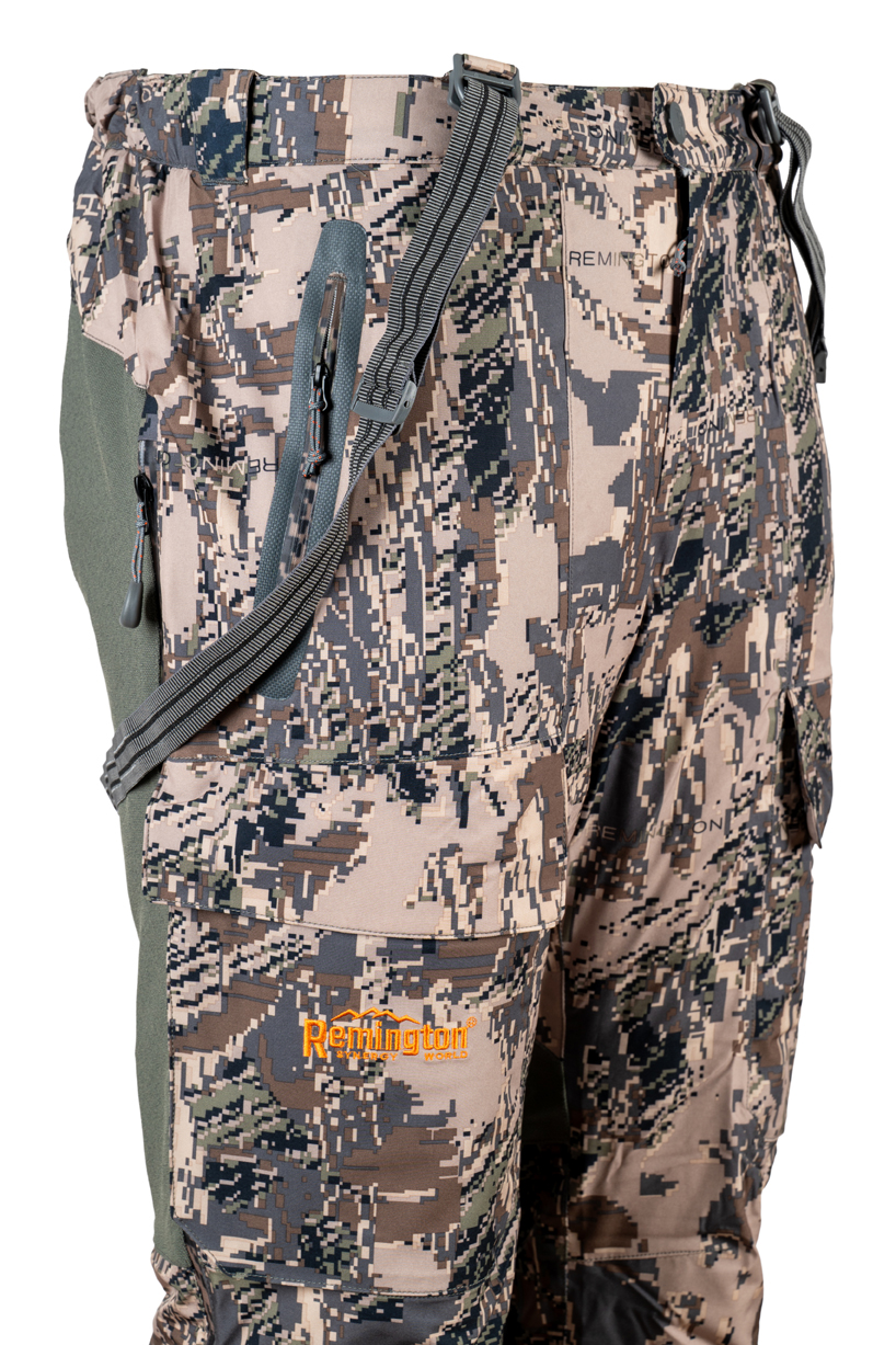 The Remington 3-in-1 Blizzard suit, developed with hunters, provides reliable protection and comfort in winter conditions. The versatile set includes two jackets and warm pants, allowing adaptation to varying temperatures. The Climatic Extreme membrane shields from wind and moisture, while durable Oxford inserts enhance wear resistance. The soft polyester inner jacket offers mobility and ventilation, and the hypoallergenic Pro Heat insulation ensures warmth. Multiple adjustments and pockets make the suit practical and functional.